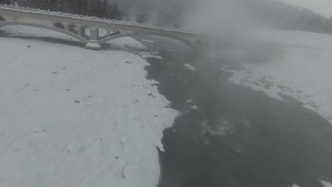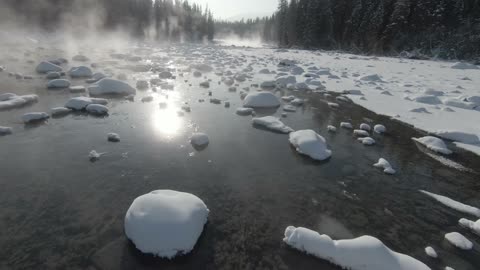 新疆禾木桥梁上泼热水水雾奇观