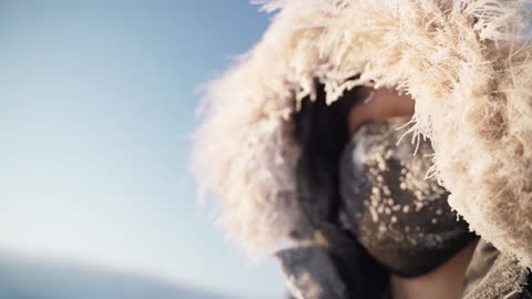 新疆禾木帽子接起寒霜特写