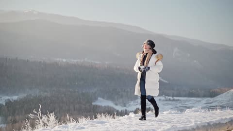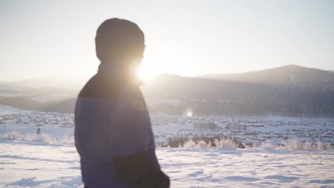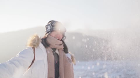 新疆禾木雪地里女生逆光玩雪升格01
