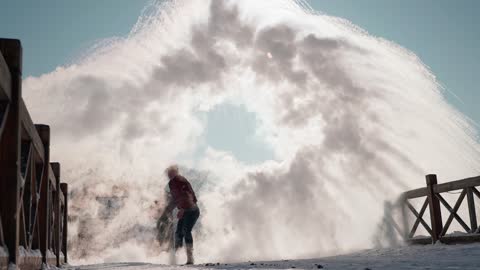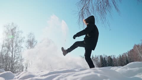 新疆禾木雪地里踢起雪花升格