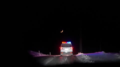新疆布尔津公路上警灯闪烁 月亮
