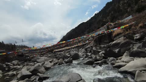 川西马尼干戈穿越机穿过岩石经幡