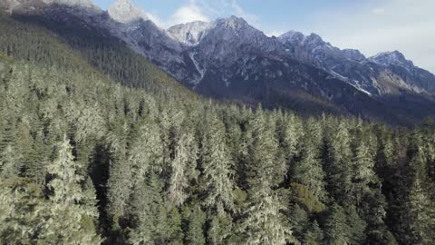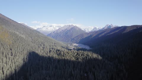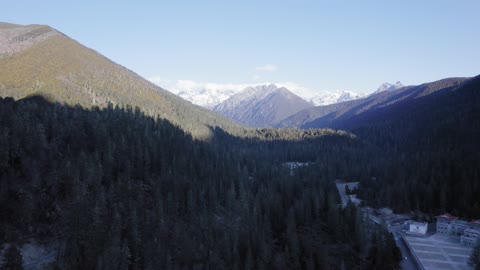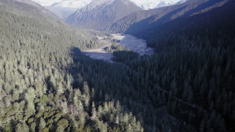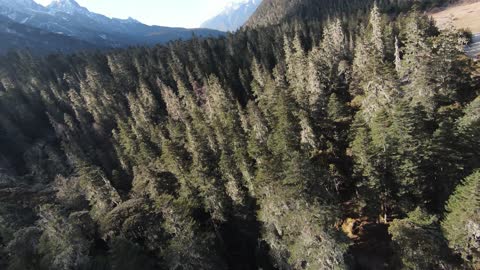 川西马尼干戈航拍树林慢慢抬头