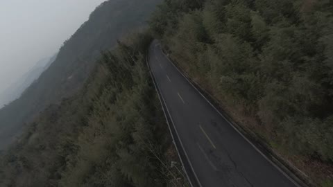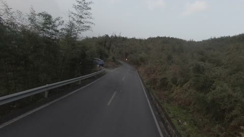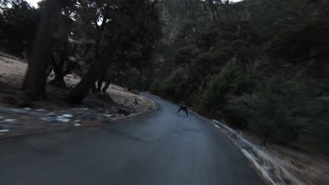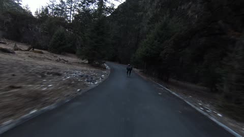 川西山间小道穿越机跟拍轮滑01