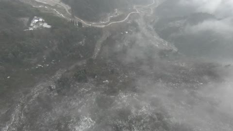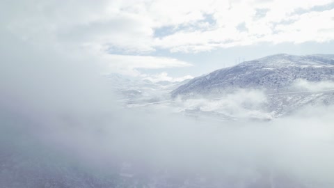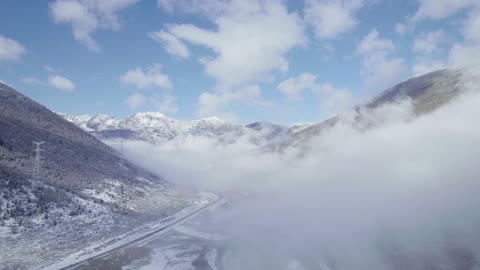 川西马尼干戈航拍穿过云雾雪山