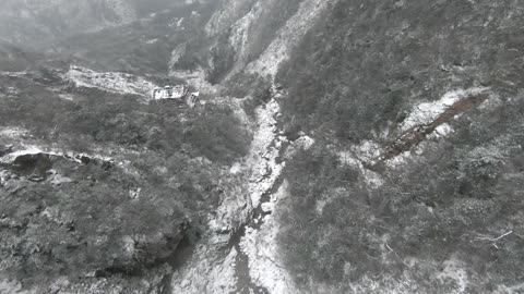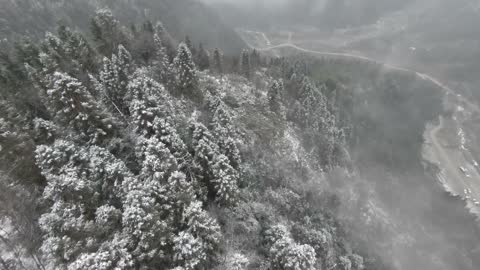 四川龙池穿越机飞过雪山山脊