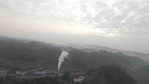 四川都江堰穿越机穿过工厂烟雾